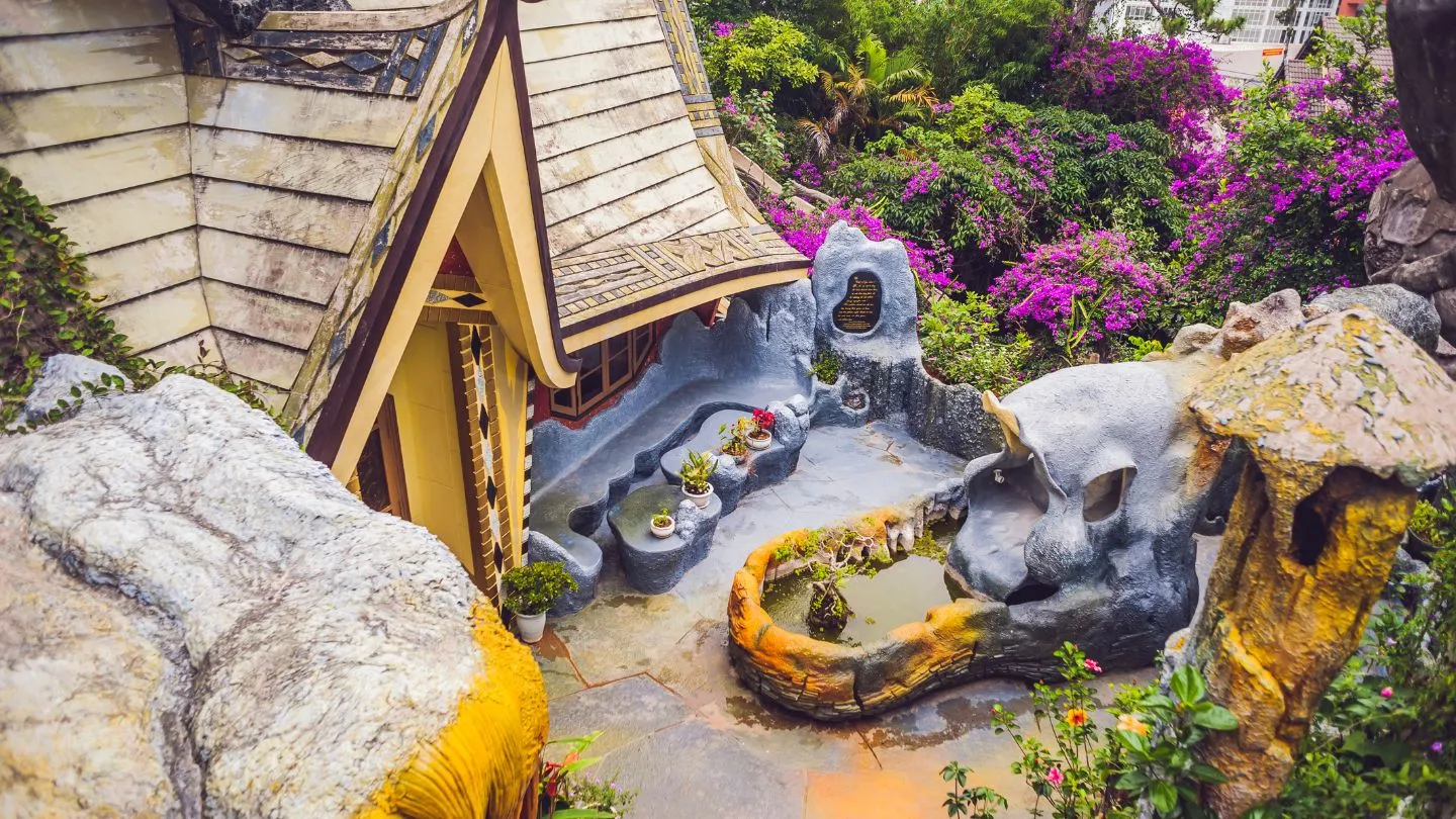 Одна из самых необычных достопримечательностей Далата — Безумный дом, построенный по проекту известного вьетнамского архитектора мадам Данг Вьет Нга. Это не просто здание, это произведение искусства, где каждый поворот, каждая лестница — это сюрприз. Древовидная форма, причудливые туннели, тематические номера — здесь можно провести целый час, исследуя все закоулки и делая невероятные фотографии.