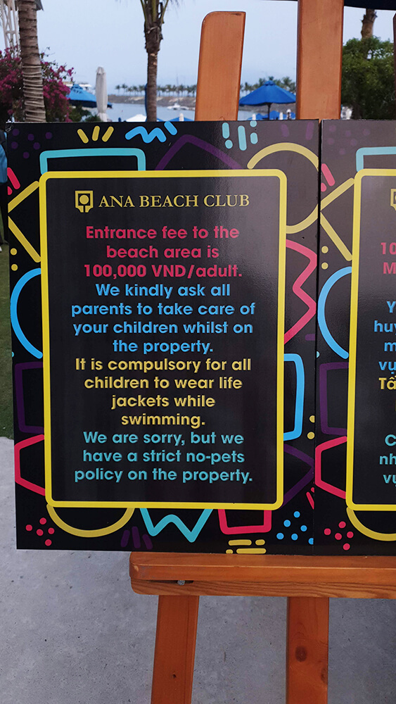 Вход на пляж стоит 100000 донгов. В эту стоимость входит лежак + бутылка воды.