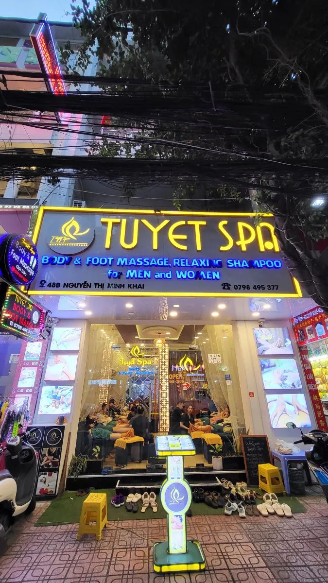 Tuyết Spa – это уютный спа-салон в центре Нячанга, где предлагают качественный массаж тела и ног по разумным ценам. Гости отмечают профессионализм массажистов, чистоту, спокойную атмосферу и приятные бонусы вроде чая и сухих фруктов после процедур. В меню — расслабляющий и глубокий массаж, массаж с горячими камнями, ароматерапия, скрабы, травяные ванны и комплексные уходы. Цены начинаются от 280 000₫ за массаж стоп и от 320 000₫ за массаж тела. Популярные комбинированные программы стоят около 450 000–700 000₫. Спа работает ежедневно до позднего вечера.